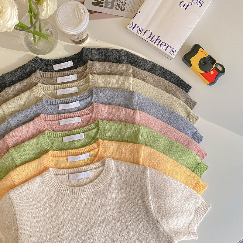 (부클니트) 루엘 보송 부클 라운드 반팔 니트 반팔니트 부클니트 라운드넥니트 데일리룩 꾸안꾸룩 여리핏코디 소프트니트 여성니트 nt2611