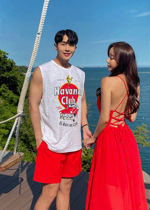 루비우 허니문 시밀러 커플룩[신혼여행/크로스/백리스/레드/스윙/비치웨어/드레스/원피스/허니문/커플룩/발리] OP18967F