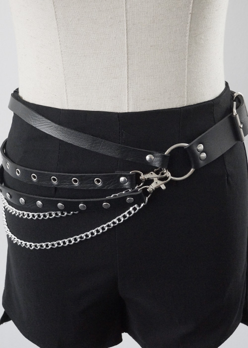 스트릿 체인 서클 포인트 레이어드 가죽 벨트 AC-0018
