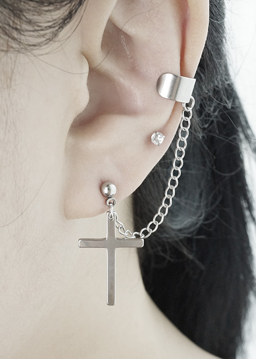 써지컬스틸 스터드 십자가 포인트 심플 체인 귀찌 피어싱 귀걸이 E-0052