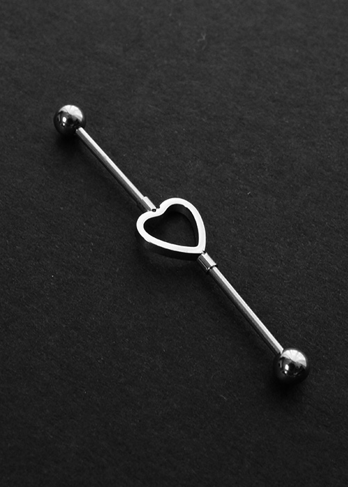 써지컬스틸 심플 하트 사선 바벨 인더스트리얼 피어싱 (바 분리) P-0110
