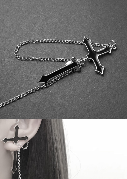 유니크 펑키 십자가 훼이크 롱 체인 귀걸이 E-0087