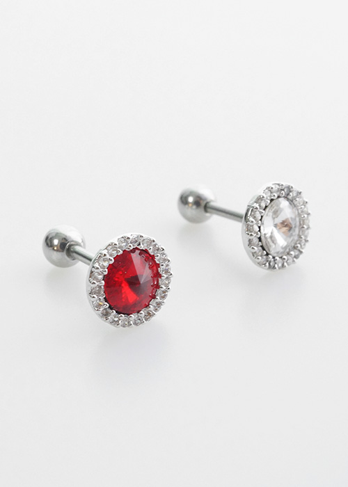 써지컬스틸 클래시 레드큐빅 화이트큐빅 포인트 바벨 피어싱 P-0098
