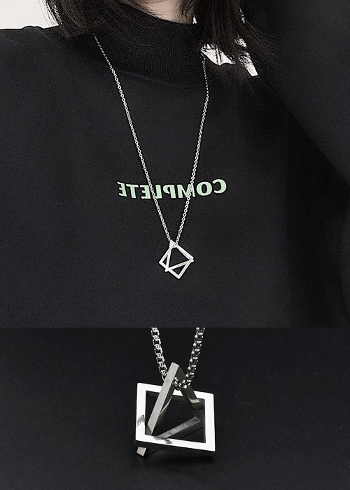 써지컬스틸 트라이앵글 스퀘어 기하학 펜던트 포인트 체인 목걸이 N-0038