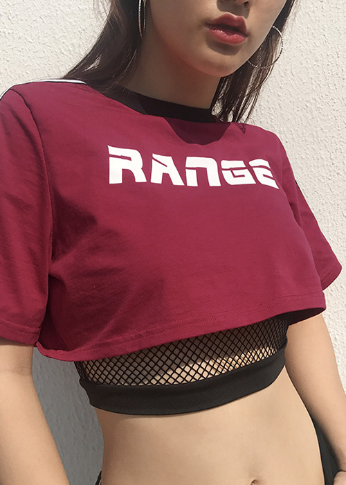 RANG 스트라이프 포인트 크롭티 배꼽티 크롭탑 반팔 티셔츠 T-0006