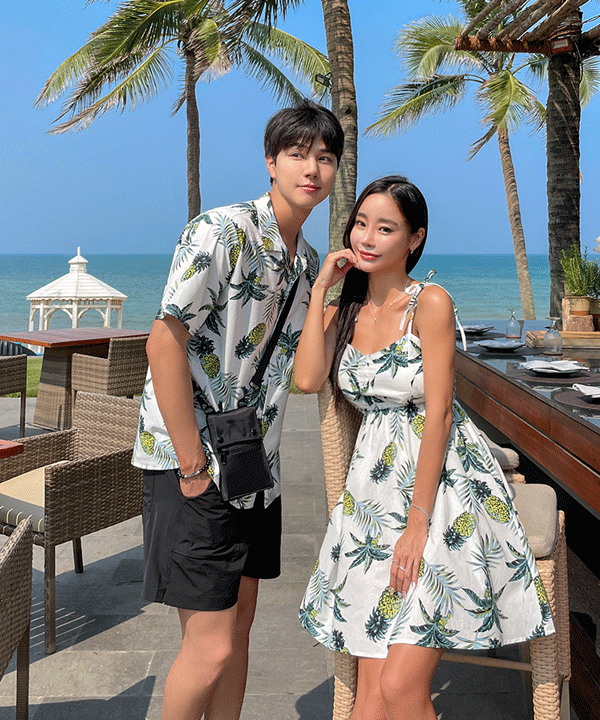 [MADE BY 비바럽]파인 허니문 시밀러 커플룩[허니문/신혼/여행/비치웨어/바캉스/휴가/시밀러/원피스/반팔/셔츠/체형커버/커플룩] OP16932F