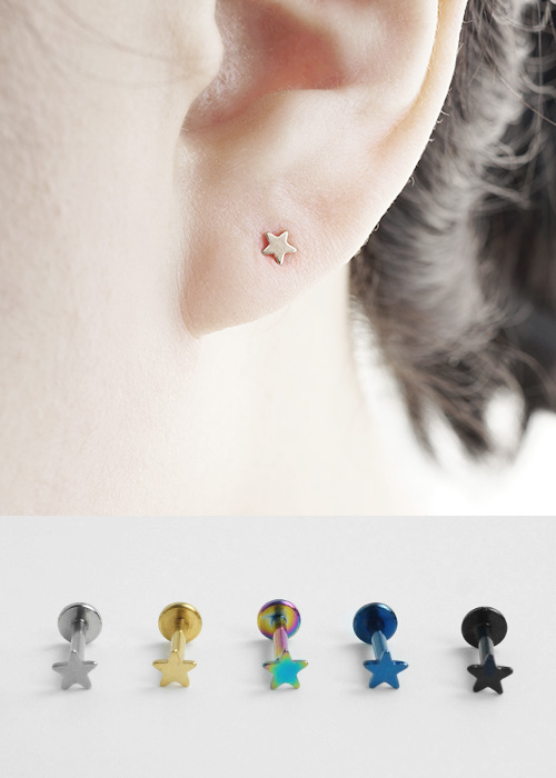써지컬스틸 별 , 스타 스너그 아웃컨츠 이너컨츠 립 라블렛 피어싱 귀걸이 P-0033
