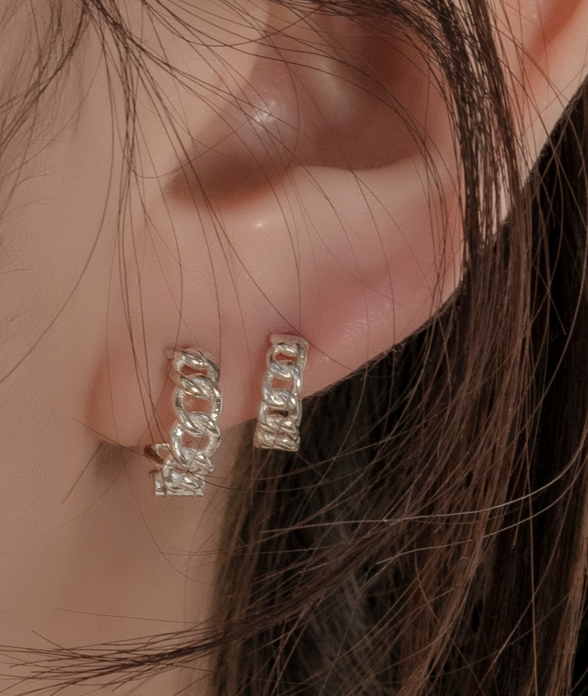 [온앤오프 협찬] [실버925] 트위스트 체인 원터치 링 귀걸이