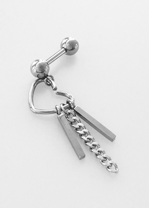 써지컬스틸 하트 포인트 투 스틱 체인 드롭 체인 바벨 피어싱 P-0164
