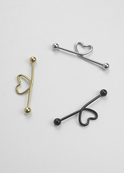 써지컬스틸 하트 사선 바벨 아웃컨츠 귓바퀴 피어싱 귀걸이