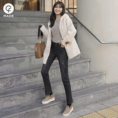 클릭엔블랙 기모일자데님팬츠[S,M,L사이즈]