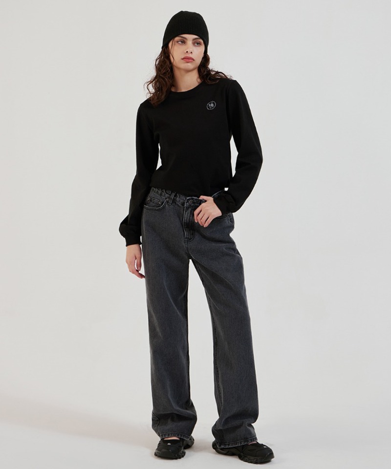 9154_다크그레이 스트레이트 세미와이드 데님팬츠