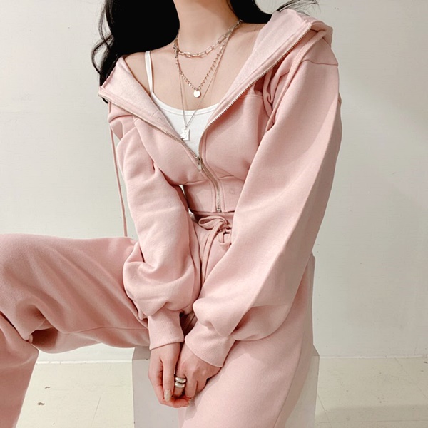 [후드집업+팬츠set!/꾸안꾸룩!] 가을 오버핏 크롭 후드 집업 밴딩 와이드 팬츠 투피스 트레이닝 세트 [6color]