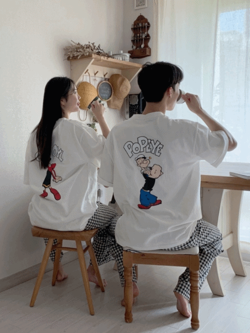 [커플] 뽀빠이 올리브 반팔 티셔츠 (2color)