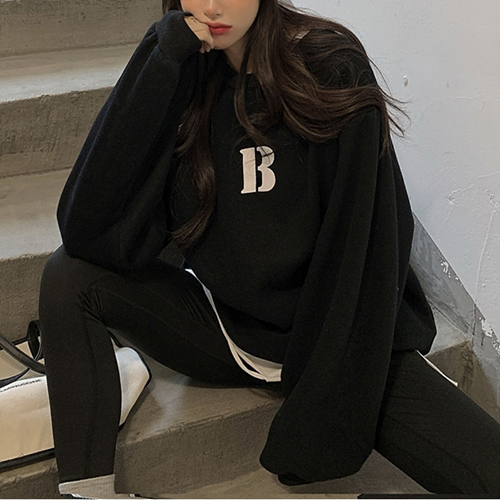 블랙 라운드넥 심플 기본 루즈핏 데일리 여성 맨투맨 티셔츠 J31