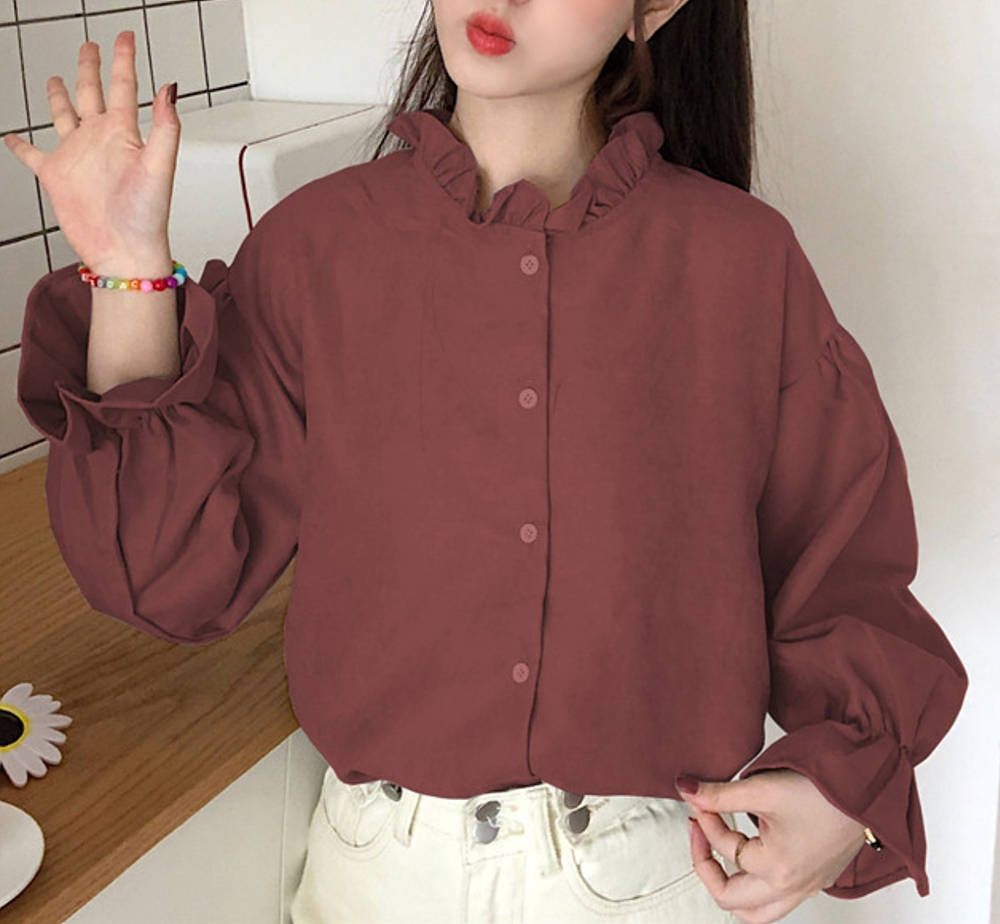 팥죽색 셔츠 블라우스 여성스런 로맨틱 데일리 프릴 J25