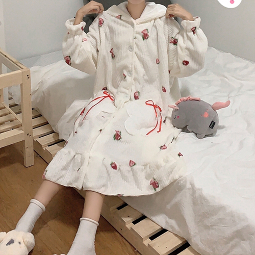 화이트 후드 귀여운 따듯한 홈웨어 치마 잠옷 파자마 J25