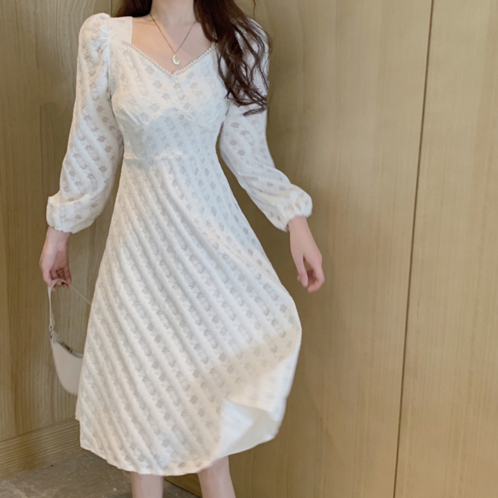 화이트 슬림핏 하이웨스트 브라이덜 샤워 미디 원피스 J25