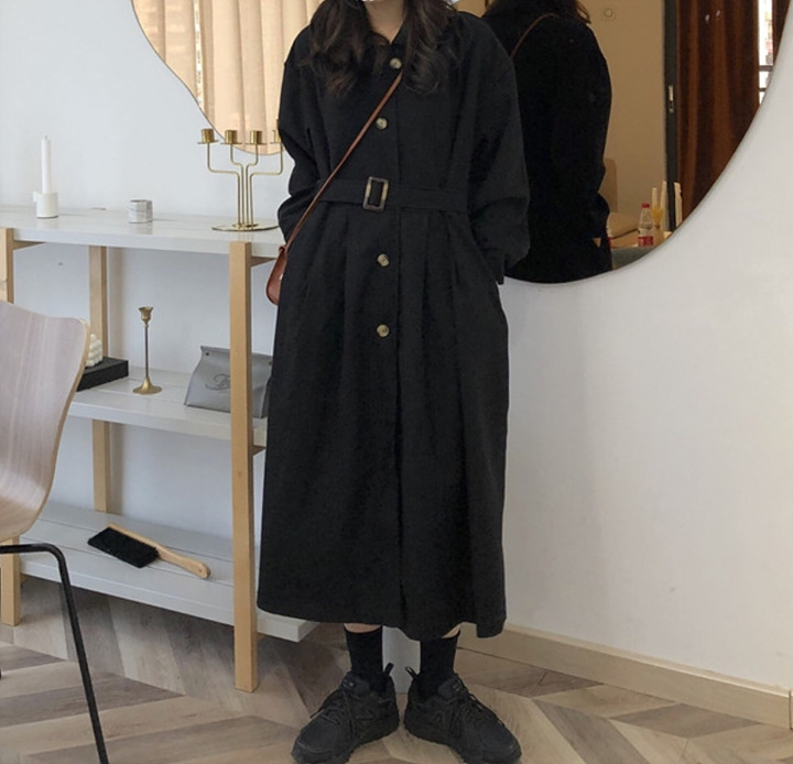 블랙 프렌치 쉬크 트렌치 코트 롱원피스 도시여자 J25