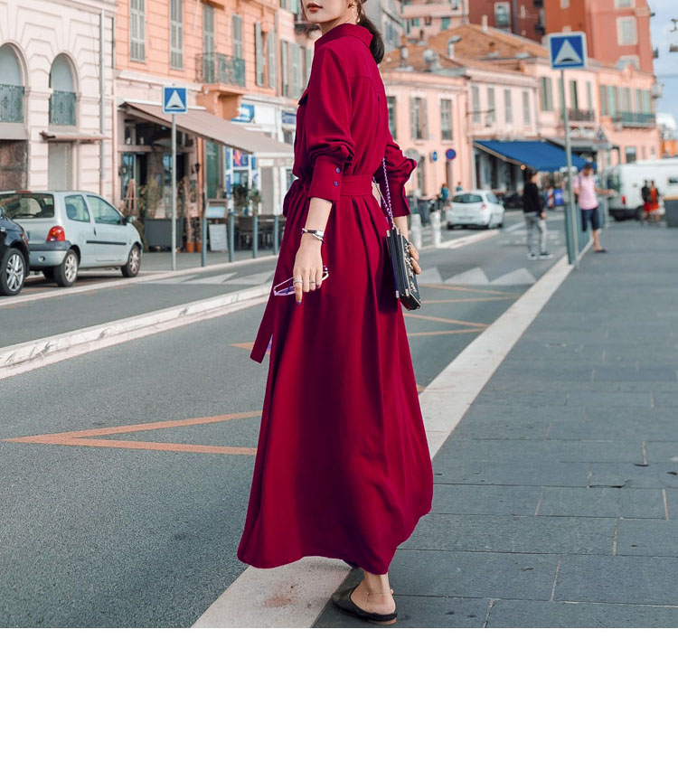 쿠바원피스 남자친구 롱스커트 와인 롱원피스 J403