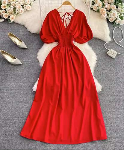 박시원피스 해변 롱 레드 백슬립 백리스원피스 J505