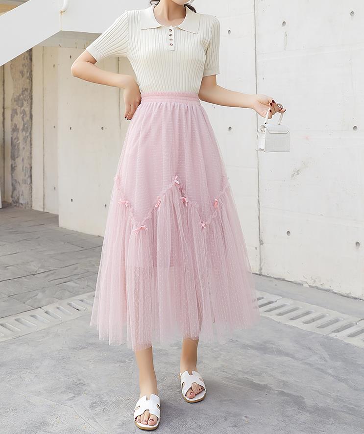 레이스망사 치마 망사 스커트 밴딩치마 롱스커트 J1
