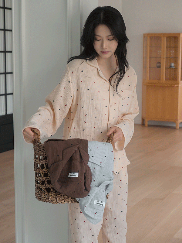 [뉴버전!/1만장 돌파/☁코튼] J'eu 체리 요루면 파자마 잠옷 세트 3color, 2size