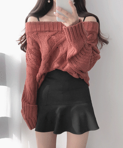 [마지막 1장 sale][인생샷가능]꽈숄더 오프숄더 니트
