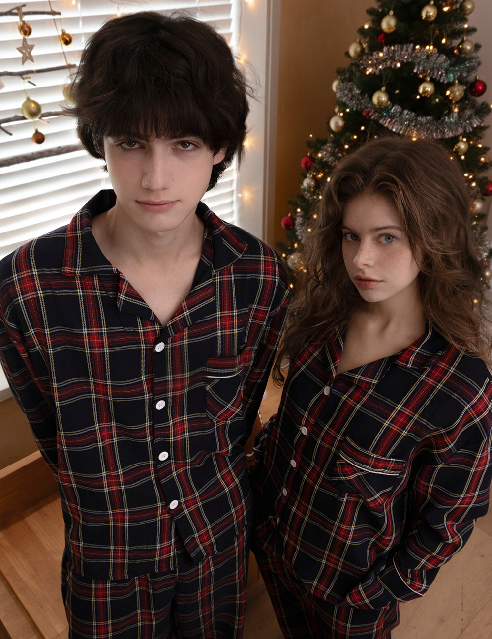 [🎄연말잠옷추천] 네이비체크 긴팔 커플 잠옷 파자마 세트 M~XL