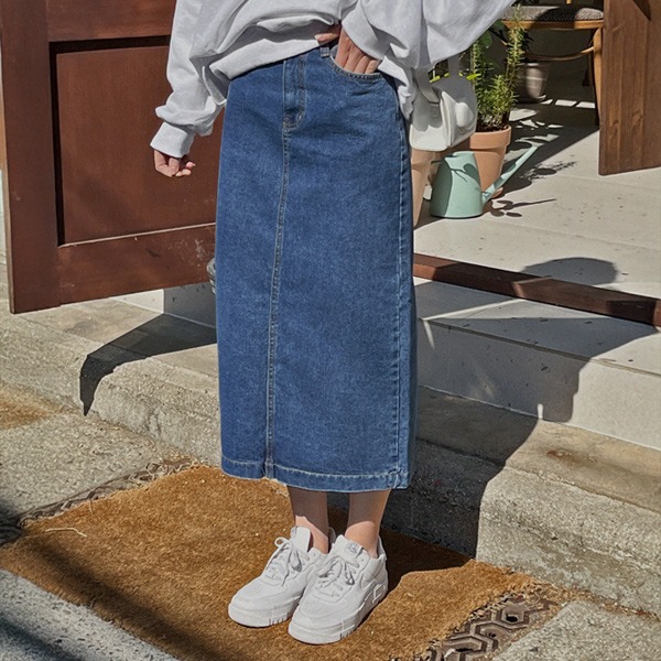 [컬러추가🖤][MADE] 스탠딩 데님롱스커트(25~36) (가을-신상-청치마-트임치마-트임스커트-일자롱스커트-빅사이즈스커트-빅사이즈롱치마)