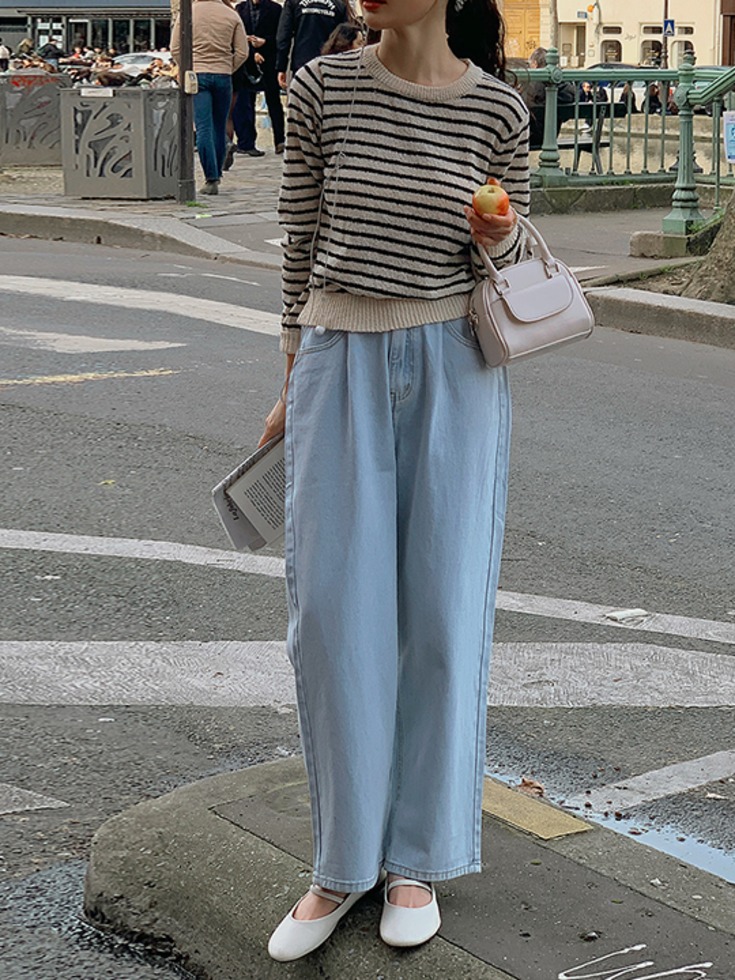 [8만장 돌파♥] [25-40] 너츠밤 하이웨스트 핀턱 뒷밴딩 스판 데님 팬츠 청바지( 봄-가을-겨울-데일리룩-빅사이즈-40사이즈-자체제작-밴딩데님-와이드데님-핀턱데님-하이웨스트데님-뒷밴딩-하이웨스트 )