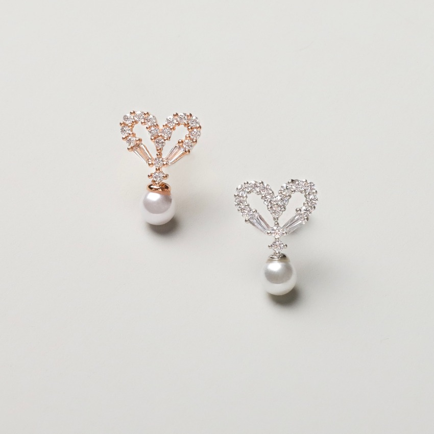 [당일] 실버925 큐빅 하트 진주 귀걸이/귀찌