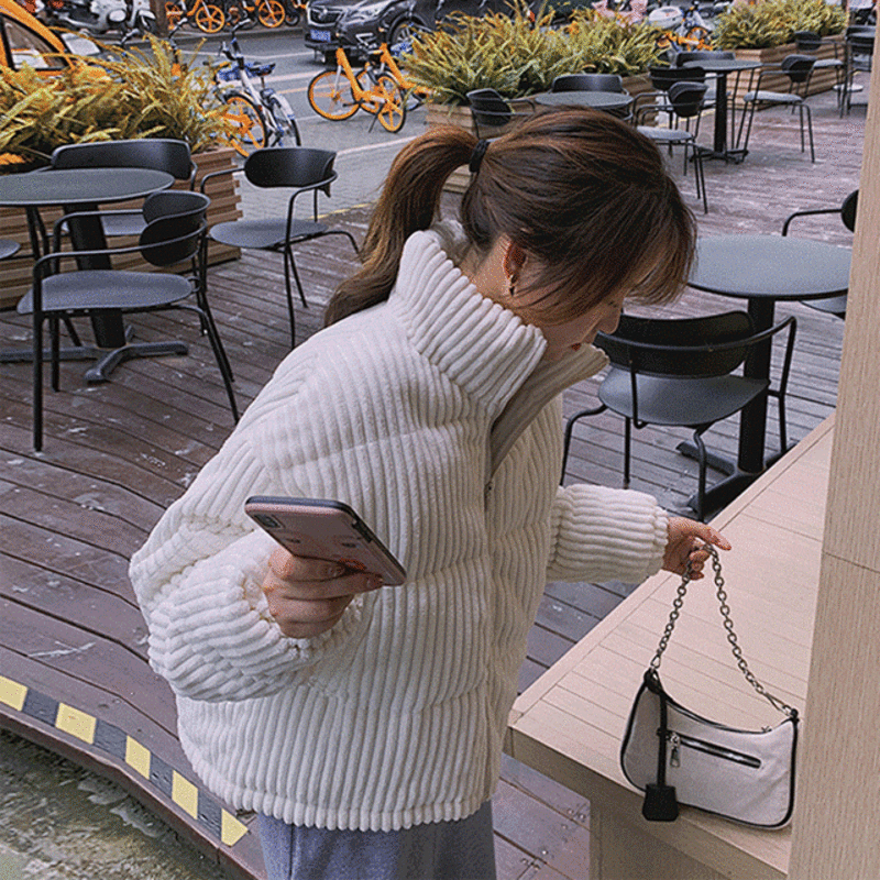[당일발송] 머쉬 코듀로이 골덴 하이넥 점퍼 숏패딩