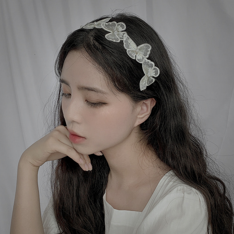 (무배) 나비 헤어밴드 요정 시스루 헤어터번 나비 머리띠