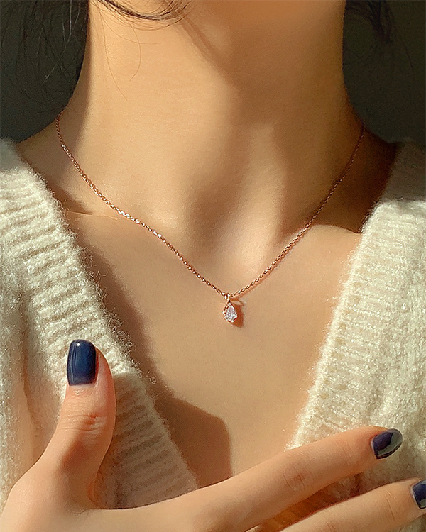 [무배] 실버925 로즈골드 물방울 큐빅 팬던트 목걸이