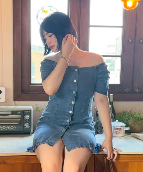 [빅사이즈] 무료배송 쿨톤 웜톤 데님오프숄더 미니원피스 (44-88까지),여름 데일리룩 비치웨어 휴가룩 원숄더
