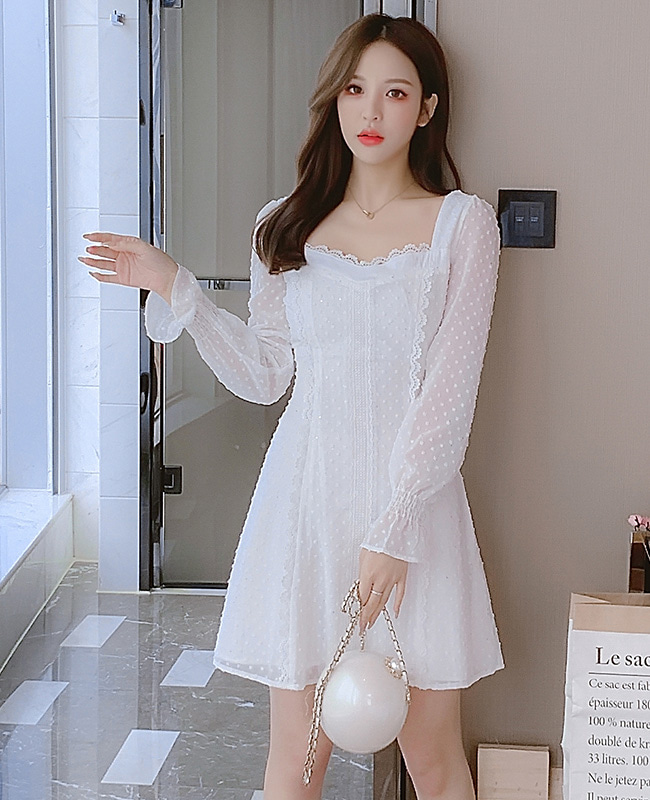 브라이덜 샤워 화이트 쉬폰 미니 원피스
