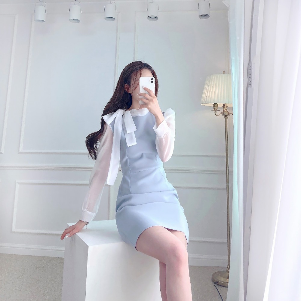 [기획특가💗/빠른배송💗] 앨리스 오간자 시스루 타이 리본 쉬폰 미니 원피스 (godo quality - 소라,베이지,핑크,블랙 발레코어 고퀄리티 국내제작 결혼식 하객룩 상견례 데이트룩 브라이덜샤워 모임룩 올드머니 올드머니룩 겨울 가을 봄 아나운서 원피스 추천)