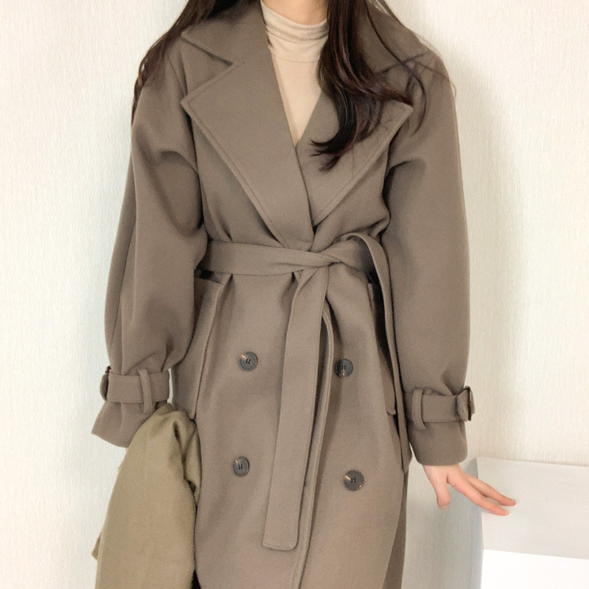 [울함유/고퀄]라떼 허리벨트 트렌치 더블 롱 울코트