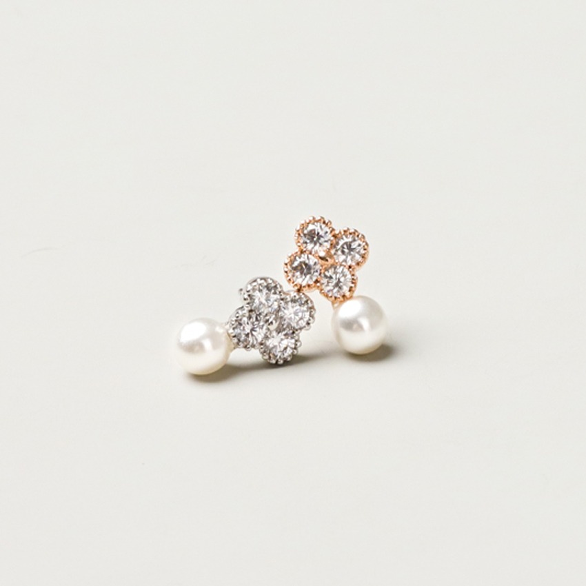 [당일] 실버925 클로버 진주 큐빅 귀걸이/귀찌