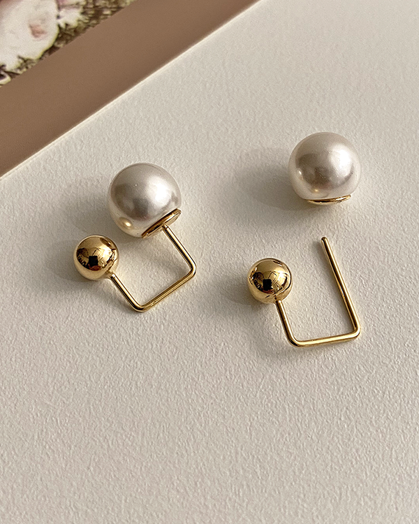 [무배] 실버925 투웨이 진주 골드 볼 레이어드 귀걸이