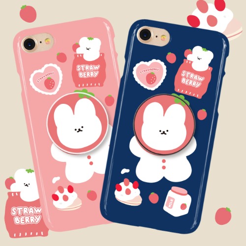 딸기 토끼 케이스 빈티지 레트로 스티커 케이스 딸기 폰거치대 토끼스마트톡