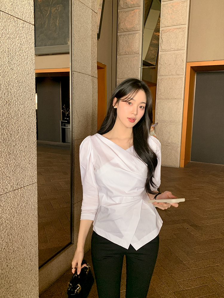 [당일발송/하객룩/출근룩/자체제작] 코튼 셔링 랩 블라우스(3colors)