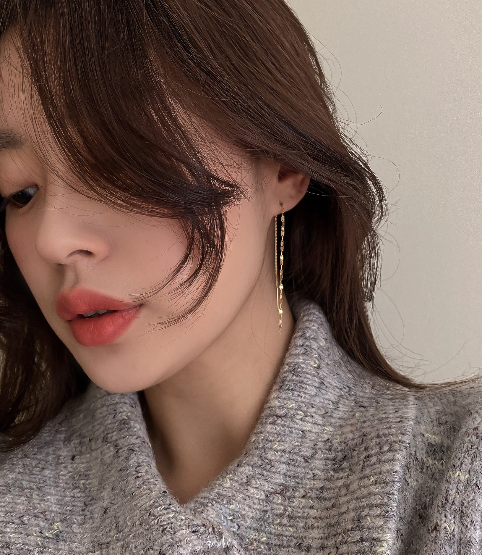 [925실버] 쥴리 납짝플렛 롱 드롭체인귀걸이