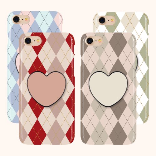 하트 폰거치대 아가일 패턴 케이스