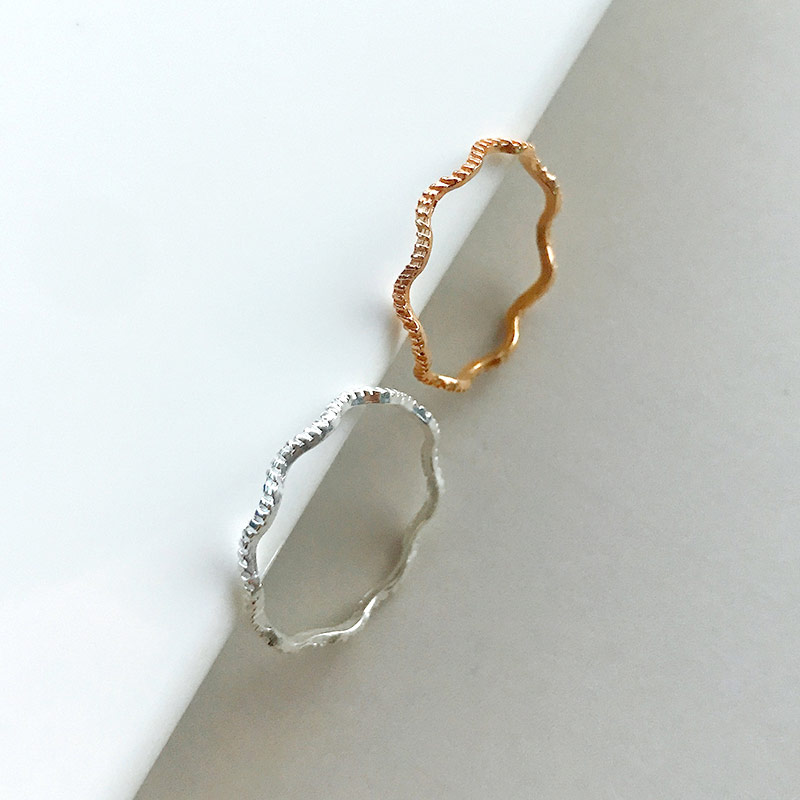 실버 925 물결 웨이브 로즈골드 화이트 실반지