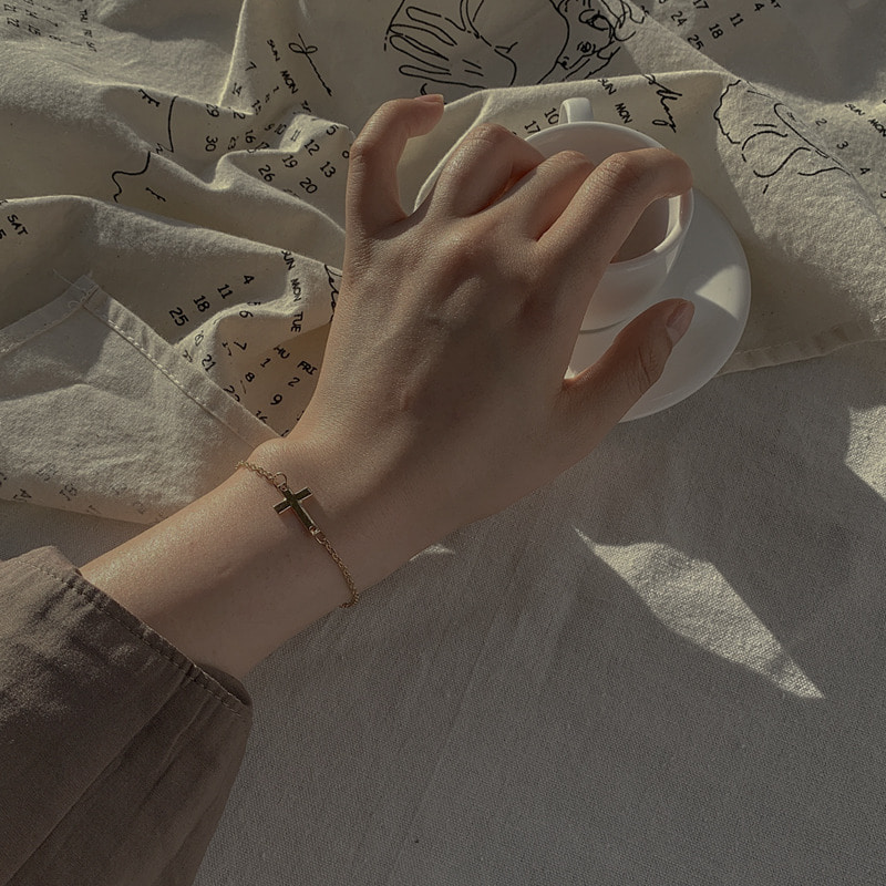 여리여리한 손목 효과 십자가 팔찌 레이어드 미니 체인 팔찌 Gold Silver