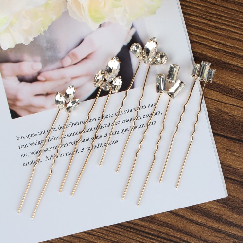 [당일출고] 크리스탈 비녀 머리 장식 U핀 한복 웨딩 고정핀 유핀 뒤꽂이 유자핀 캔디플래닛