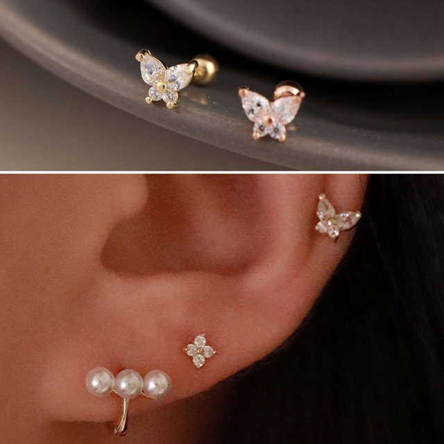 [무배/전체14k] 롤리폴리 나비 골드 피어싱 귀걸이 2color