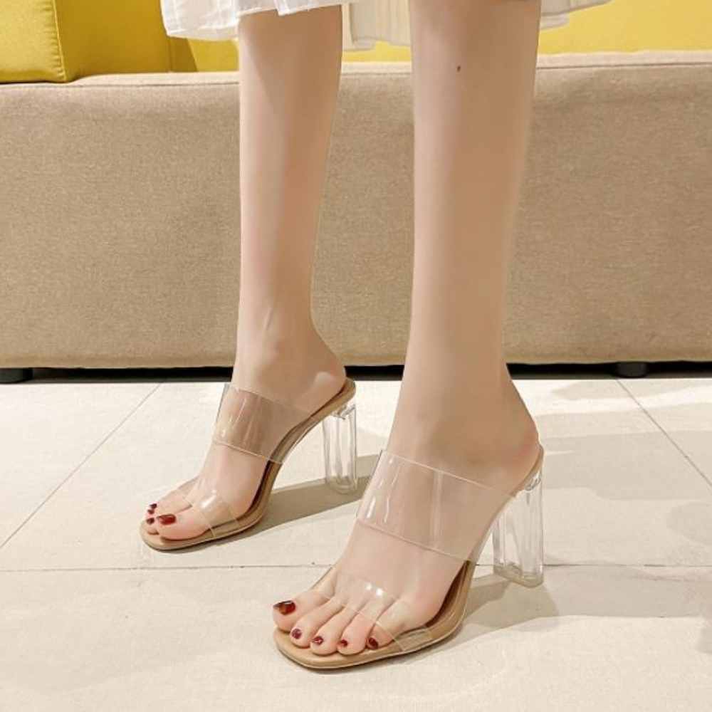 인트리 7cm 9cm 투명 통굽 뮬 샌들 힐 1color